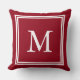 Coussin Jours d'école rouges avec le monogramme blanc de