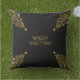 Coussin Joyeux Arbres de Noël Étoiles Black Or brillant Ch