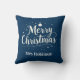 Coussin Joyeux Noël Bleu Blanc tendance Nom personnalisé