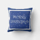 Coussin Joyeux Noël en bleu avec des flocons de neige