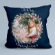 Joyeux Noël photo de famille Oreiller bleu. Personnalisez le Coussin avec des photos de votre choix et créez un cadeau de Noël parfait!