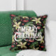 Joyeux Noël sur un arrière - plan de poinsettias blanches, feuilles et baies sur noir sont présentés sur ce férié lancer coussin disponible en plusieurs tailles et styles. CORRESPONDANCE d'objets dans notre collection.