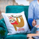 Ce design présente une paresse festive accrochée à une branche d'arbre avec le texte moderne "Joyeux Noël" typographie rouge populaire. #noël #fêtes #fête #paresse #animaux #mignons #saisonnière #coussin #décoration #maison