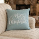 Joli coussin bleu clair dans le style de ferme de campagne. "Joyeux Noël" cite le texte écrit comme mot-clé de calligraphie. Trouver d'autres objets correspondants dans ma collection "Noël en rouge, bleu et blanc"