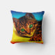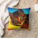 Ce coussin a un chaton artistique représenté dessus.