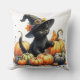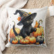 Coussin Kitten d'Halloween noir avec Citrouilles et Casque
