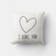 Un oreiller avec un beau coeur et le texte I Love You en Blanc Noir.