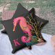 Un magnifique cheval de mer rose nageant à travers le corail est la base de ce design. Il ya une initiale qui peut être remplacé par le vôtre ou supprimé si non voulu. Le motif est répété à l'arrière.