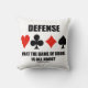 Montrez votre pont tordu / dupliquer l'assiette du pont avec cet oreiller de lancer avec les quatre costumes de carte ainsi que le truisme de pont suivant disant : "La défense, le jeu du pont est tout".
