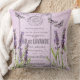 Fleurs et papillons décoratifs de lavande avec un étiquette vintage de parfum de French Eau de Lavande. Avec un arrière - plan de motif coloré par lilas. Doublez la version dégrossie de ce coussin avec le même collage floral vintage de papillon des deux côtés. Un coussin carré décoratif parfait et rêveur pour votre fauteuil de lit, de divan ou de favori.