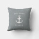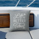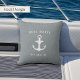 Un complément parfait à la décoration de votre bateau, notre oreiller côtier à lancer dispose d'un arrière - plan bleu ardoise doux avec "la vie est meilleure sur le bateau" en typographie blanche, accentué avec des illustrations de roue et d'aviron de navire. Personnalisez l'envers avec votre nom de bateau et le registre du navire avec une ancre nautique au centre.