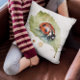 Coussin Ladybug assis sur une feuille d'aquarelle vibrante