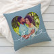 Moderne et élégant design d'oreiller de projecteur personnalisé comprend une photo préférée en forme de grand coeur avec un design minimaliste de typographie blanche "Amour" qui inclut des détails florissants et de coeur. Vous pouvez modifier la couleur arrière - plan gris-gris-vert d'ardoise. Une idée cadeau unique pour un couple marié ou pour votre bien-aimé le jour de la Saint-Valentin !