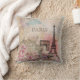 Design parisien vintage avec Paris, la Tour Eiffel, l'Arc De Triomphe, fleurs dans un arrière - plan éphémère rose et bleu doux. Customisez et remplacez le libellé "PARIS" par votre citation préférée. Améliorez votre espace de vie avec ce beau coussin vintage. Convient à la décoration de maison victorienne chic et chic parisienne.