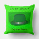 Un oreiller à lancer Avec un Casquette vert irlandais et une CHANCE IRLANDAISE avec Leprechaun sur le fond qui est lumineux et coloré.