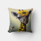 Les caractéristiques amusantes de l'oreiller de lancer AI généré surréaliste peinture d'art numérique d'une girafe capricieuse transformée avec un bourdon.