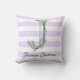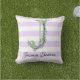Coussin Lavande clair violet bandes blanches monogramme