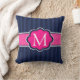 Motif élégant et de très bon goût de rayures de bleu marine avec la conception de cadre de bannière de roses indien au milieu pour votre initiale personnalisée de monogramme.