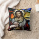 Coussin Le Bon Pasteur; Jésus sur le vitrail