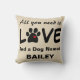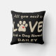 Le carreau mignon avec la patte de chien avec le coeur dans lui et disant, tous que vous avez besoin est amour et un chien appelé Bailey. Vous pouvez le customiser avec le nom de votre propre chien car le nom est un objet de modèle. Le verso du coussin a même dire est vis-à-vis de la combinaison de couleurs. Grand pour vous ou pour un amoureux des chiens que vous connaissez.