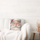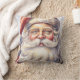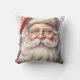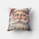 Coussin avec une illustration de style vintage. Un portrait de Père Noël avec sa grande barbe blanche portant son chapeau traditionnel de Père Noël rouge.