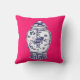 Ce coussin comporte une peinture originale par l'artiste Anne Harwell d'un pot chinois antique de gingembre de porcelaine dans le détail sensible avec bleu et le blanc sur un arrière - plan rose-foncé, avec l'image sur l'avant et le dos.