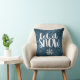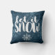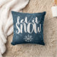 Le joli, rustique carreau de Noël imprimé pour ressembler à la toile de jute, comportant des flocons de neige dans bleu profond et "l'a laissé neiger" dans la police main-en lettres blanche.
