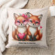 Coussin avec une adorable image de 2 renards portant de mignons verres de coeur teintés rose. Décoré avec des accents de coeur.