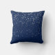 coussin de 16 x 16 pouces montré dans un bleu-foncé. A de petites étoiles colorées gris argenté d'amusement partout sur l'avant et le dos.
