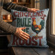 Ce design audacieux et charmant présente un fier coq debout sur une perche en bois, entouré d'une typographie d'inspiration vintage qui déclare : "Le poulet domine le toit." Avec des tons chauds et des lettres rustiques occidentales, cette illustration saisit l'essence de la vie de campagne et le charme de baryton. Le style classique et ludique est parfait pour ceux qui apprécient la vie agricole, l'esthétique chaleureuse des fermes et l'humour léger. Une touche d'illustration vintage et d'éléments traditionnels d'art populaire apportent un charme intemporel, ce qui en fait un choix exceptionnel pour les amateurs de charme rural et de ambiances rurales. L'IA a généré des oeuvres d'art.