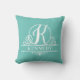 Beau coussin monogramme famille scindé sur un arrière - plan turquoise clair. Vous pouvez facilement modifier la couleur Arrière - plan en cliquant sur "Personnaliser ce modèle" pour "Cliquez pour customiser plus loin", puis sur le côté gauche sous calques vous trouverez le lien de couleur arrière - plan. Cliquez dessus et changez de couleur !