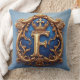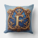 Monogramme bleu luxueux F orné d'une couronne dorée et de filigranes ornés. Un blason décoratif royal parfait pour une marque de luxe, un design patrimonial et du papier à lettres ou des invitations somptueuses.
