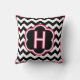 Lettre H. Joli monogramme (unique première) jeter l'oreiller. Bandes en zigzag noir et blanc (chevron), avec des détails blancs et fuchsia et une seule initiale au centre. Nos oreillers à jetons sont offerts en trois tailles : carré 16 po x 16 po, carré 20 po x 20 po, ou coussin lombaire de 13 po x 21 po, et en coton ou polyester. Produite par des mères célibataires ayant un emploi durable aux États-Unis, votre achat de coussin sur mesure contribue à briser le cycle de la pauvreté pour les mères célibataires et leurs enfants pendant qu'il est beau dans votre maison! De Scarribaby Design, soutenu par la garantie Zazzle.