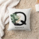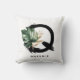 Lettre Q monogramme personnalisable coussin avec aquarelle feuille de monstère tropicale, fausse feuille de feuille d'or et accents de brosse d'aquarelle noire. Personnalisez ce coussin de monogramme tropical en ajoutant votre nom ou d'autres détails. Ce coussin de monogramme Q de lettre boho sera parfait comme cadeau. D'autres lettres sont disponibles.