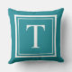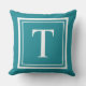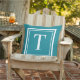 Le coussin élégant avec accent extérieur dispose d'une lettre serif monogramme que vous pouvez personnaliser avec votre prénom ou votre nom initial, encadré par un simple cadre double carré en blanc avec la couleur turquoise vert bleu arrière - plan. Vous pouvez customiser la couleur arrière - plan pour coordonner votre décoration avec celle de votre maison.