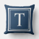 Le coussin élégant accent extérieur dispose d'une lettre serif monogramme que vous pouvez personnaliser avec votre prénom ou votre nom initial, encadré par un simple cadre double carré en blanc avec une couleur marine bleu arrière - plan. Vous pouvez customiser la couleur arrière - plan pour coordonner votre décoration avec celle de votre maison.