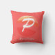 Monogramme moderne Lettre initiale corail jaune orange Lève oreiller. Lettre P. Don de vacances.