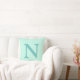 Coussin Lettre initiale sarcelle claire tendance pastel bl