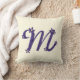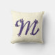 Coussin Lettre monogramme M violet avec détails floraux Cr