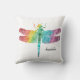 Coussin personnalisé par silhouette magnifique de libellule d'aquarelle d'arc-en-ciel. Beaucoup de styles et de tailles. Arc-en-ciel de couleurs dans l'aquarelle, silhouette de libellule. Ajoutez le nom pour personnaliser. Concevez des deux côtés. www.SamAnnDesigns.com