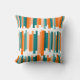 Cet oreiller de lancer a un motif de lignes en turquoise et orange en longueurs variables.