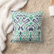 Coussin L'ikat chic moderne de bleu marine et de vert se