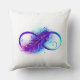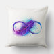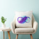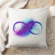 Symbole de l'infini avec une belle plume peinte en couleurs vives violettes et bleues sur fond blanc.