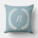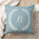 Coussin Linge Bleu Clair Monographié Et Guirlande Blanche