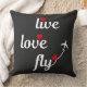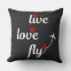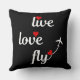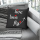 Coussin Live Love Fly Typographie avec avion & Coeurs