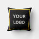 Une image d'espace réservé se trouve sur cet oreiller à lancer noir. Vous pouvez remplacer l'image par le logo de votre entreprise. La fausse bordure en or n'est pas faite de papier peint.