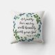 Love Mercy Scripture Custom Inspirational Citation Throw Pillow - Ce design moderne avec des mots d'encouragement du Micah 6:8 dans la Bible qui dit "Agissez juste, amant miséricorde, marchez humblement avec votre Dieu". La citation peut être changée ou customisée avec vos propres mots encourageants, et présente une verdure à l'eucalyptus bleu et vert de l'aquarelle d'eau.