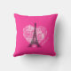 Fille coussin avec la Tour Eiffel et texte noir : PARIS sur arrière - plan rose.
