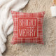 Lumineux et Joyeux, typographie blanche moderne, festivités rouges et blanches en plaid motif lancer l'oreiller.