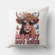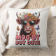 Une vache des Highlands adorable avec des fleurs et des papillons. Typographie de Lunatique Mais Mignon. La couleur de fond peut être ajoutée.